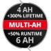 Einhell 18V 4-6 Ah Multi-Ah PXC PLUS е част от многофункционалната и безкрайно комбинируема акумулаторна система Power X-Change от Einhell. Универсално приложимите батерии Power X-Change осигуряват мощност и издръжливост на всички безжични инструменти от цялото семейство продукти в градината и цеха. Предимствата за клиента са очевидни: С една батерия и едно зарядно устройство за всички устройства не само спестявате значителни разходи при закупуване, универсалното приложение е благосклонно към околната среда и същевременно предлага гъвкавост в къщата и градината. Също така няма бъркотия или хаос с голямо разнообразие от батерии и зарядни устройства за всяко отделно устройство. Благодарение на технологията MULTI-Ah, той може да работи като батерия 6Ah за максимално време на работа и като батерия 4Ah за 3 пъти по-дълъг експлоатационен живот. Най-новото поколение литиево-йонни клетки създават 100% повече мощност за максимална мощност във всички приложения.