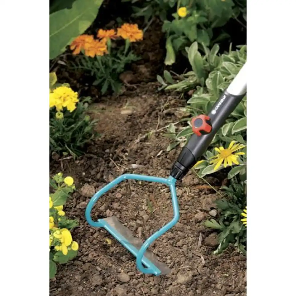 Подравняващата мотика GARDENA combisystem е изработена от висококачествена, покрита с дуропласт, стомана и острие от неръждаема стомана за оптимална защита от корозия.