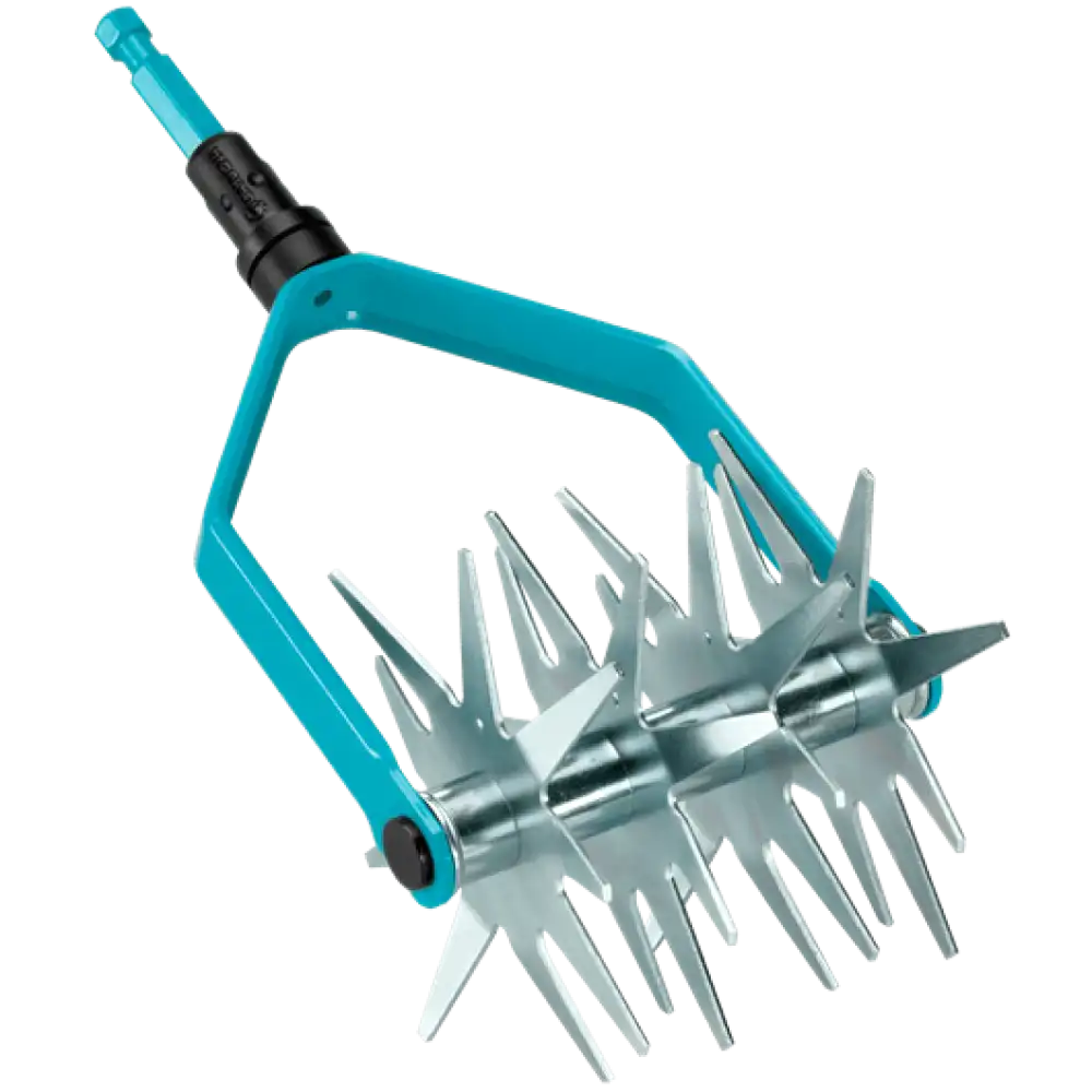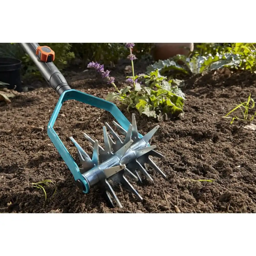 Ръчната фреза GARDENA combisystem има работна ширина 14 см и е изключително подходяща за подготовка за засяване и разрохкване на лехи. Благодарение на четирите специално оформени звездообразни колела почвата се раздробява особено фино - важно изискване при засяването на семена. Ръчната фреза е подходяща за всички дръжки combisystem. Препоръчителна дължина на дръжката: 150 см в зависимост от Вашата височина. 25 години гаранция.