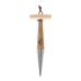 Изработено от висококачествена неръждаема стомана, която осигурява издръжливост и дълъг живот на инструментите, и дръжка от ясен. Садилото има т-образна форма, която улеснява създаването на дупки с равномерна дълбочина. Инструментът е снабден с кожена връзка за окачване, осигуряваща лесно съхранение.